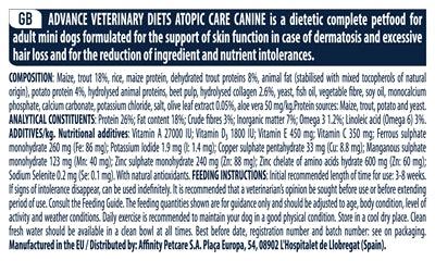 Advance Atopic Mini brokken zijn speciaal ontwikkeld dieetvoeding voor kleine hondenrassen tot 10 kg die last hebben van huidproblemen zoals dermatitis of haaruitval. De brokken helpen de huidbarrière te versterken, verminderen jeuk en beschermen de huid tegen irritaties en flare-ups. Forel en aardappel worden als hoofdingrediënten gebruikt om het risico op voedselintolerantie te minimaliseren. De brokjes zijn bovendien aangepast aan de kleine kaak van jouw hond, zodat ze makkelijk te eten zijn.