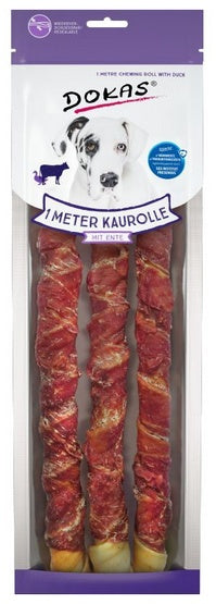 DOKAS Rolki z kaczką XXL to gryzaki składające się ze skóry wołowej owiniętej filetami z piersi kaczki.