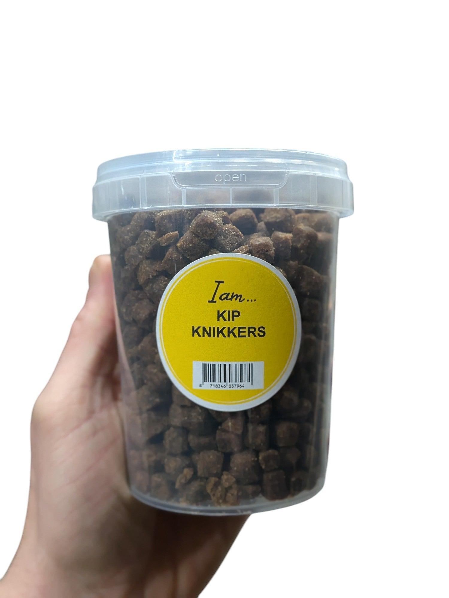 Deze snacks van kippenvlees hebben de grootte van een knikker en kun je gebruiken als beloning of tussendoortje. De knikkers zitten in een emmertje dat goed af te sluiten is.