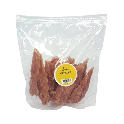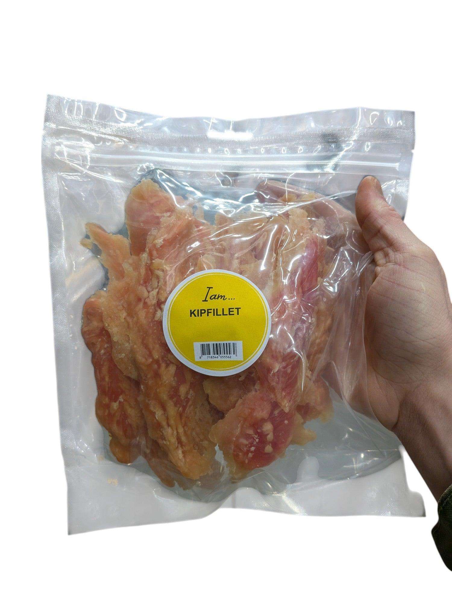 Samenstelling: Kipfilet 94,5%, glycerine, gemodificeerd maïszetmeel, sorbitol