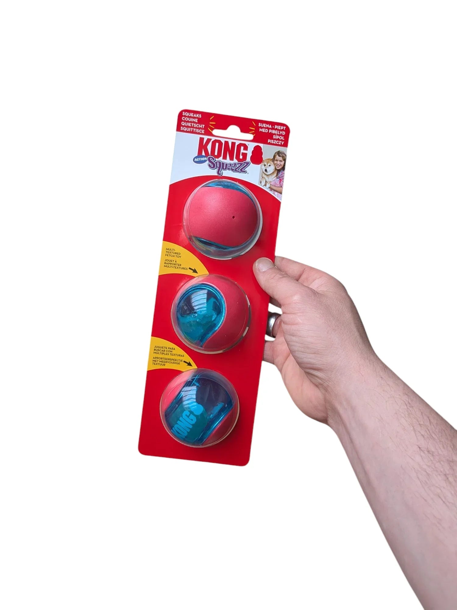 Kong Squeez Action Rood - 3 stuks- Extra hoog stuiterende bal voor honden met pieper