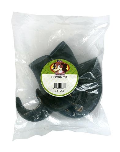 De Petsnack Hoorn Tip 3 st zijn de uiterste punten van buffelhoorn, een ideale en geheel natuurlijke snack voor honden die graag kauwen.