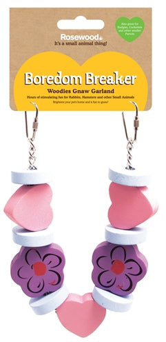 De Woodies Slinger Bloem 43 cm is knaagspeelgoed voor knaagdieren zoals konijnen en cavia's in de vorm van een kleurrijke slinger. Knaagdieren knagen om hun leefomgeving te ontdekken én om de tanden te slijten. De tanden blijven namelijk hun hele leven doorgroeien. Tijdens het knagen, schuiven de tanden over elkaar, waardoor de tanden niet te lang worden. Ondanks dat jouw knaagdier het speelgoed uiteindelijke kapot knaagt, betekent dat natuurlijk niet dat het speelgoed niet leuk en kleurrijk kan zijn. De speeltjes in de Woodies serie zijn kleurrijk en zijn gemaakt voor alle soorten knaagdieren.