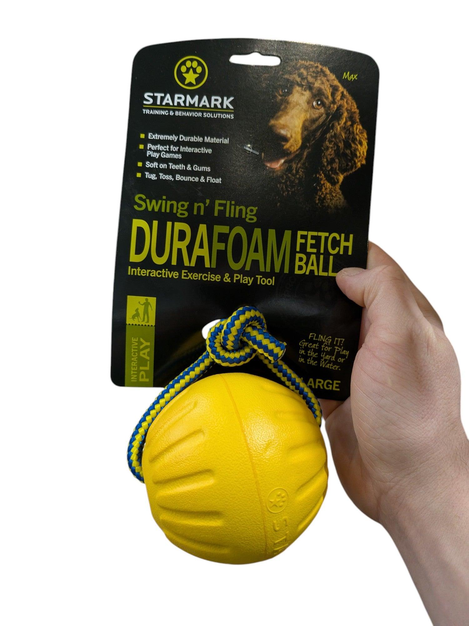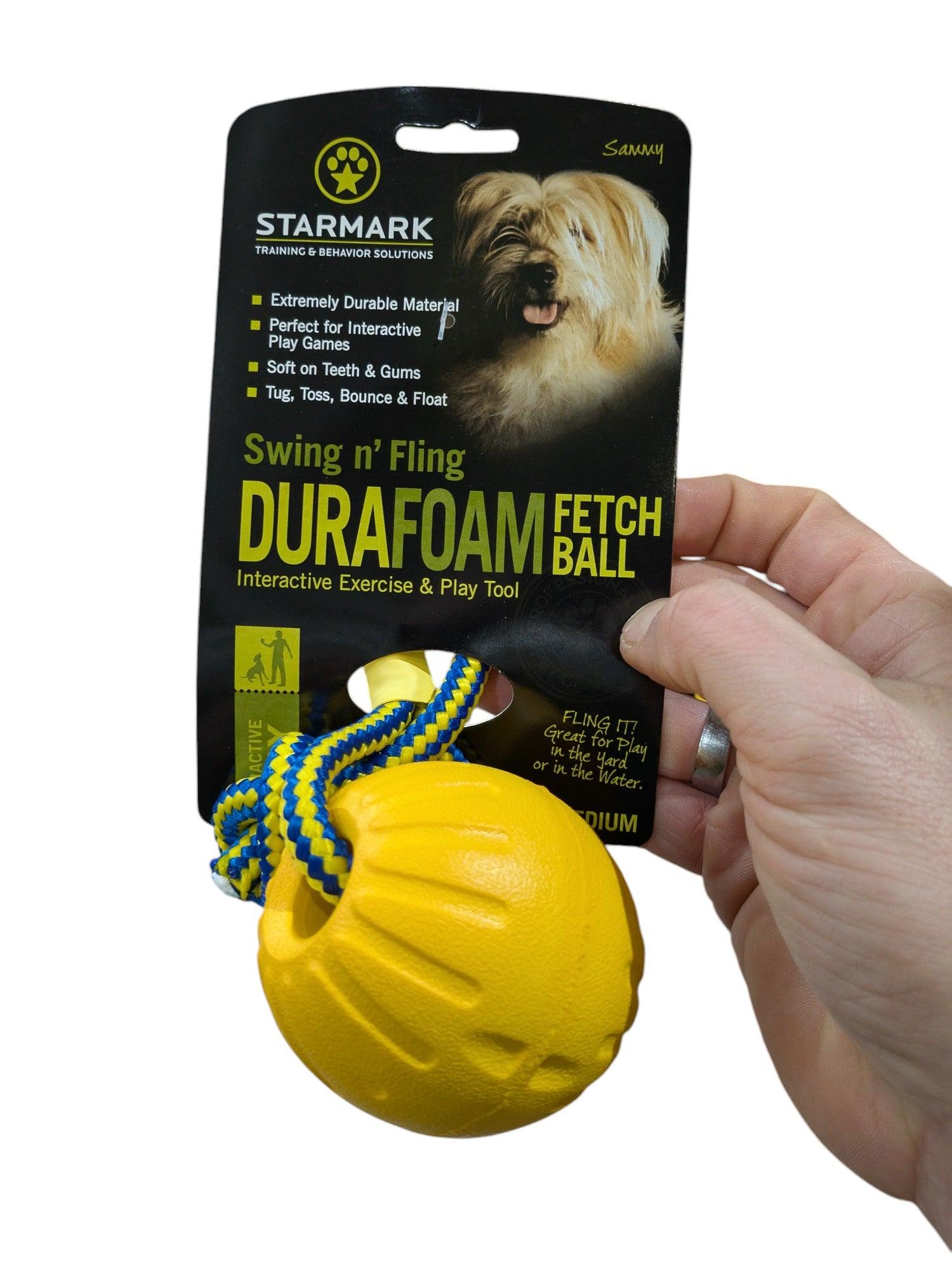 De Swing 'n Fling DuraFoam Fetch Ball™ is speciaal ontworpen voor apporteerspelletjes en trekspelletjes met je hond. Dankzij het stevige touw kun je de bal extra ver gooien, waardoor jouw hond nog meer plezier beleeft aan het apporteren. Dit robuuste speelgoed blijft bovendien drijven op water en is zacht voor de tanden van je hond.