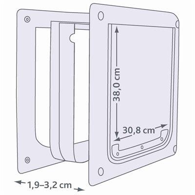 Het Trixie 2-Weg Hondenluik Wit M-XL 39 x 45 cm is een kunststof huisdierluik voor honden, met flexibele, geluidsarme klep, met vergrendeling. Ideaal om jouw honden de mogelijkheid te geven naar eigen behoeven naar binnen en naar buiten te gaan! Dit luik is voorzien van een flexibele, transparante klep die geluidsarm sluit. Door het uitneembare, metalen paneel is vergrendeling mogelijk en bescherm je jouw woning tegen ongewenste dieren en regen en wind. Inclusief tunnelelement, met een inbouwdiepte van 19 - 32 mm.