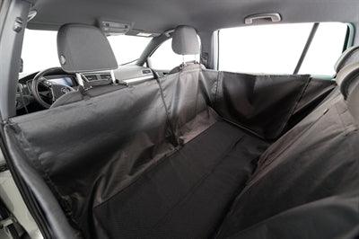 Uniek aan deze deken zijn de zijstukken die aan de deuren bevestigd worden. Deze beschermen niet alleen je deurpanelen tegen haren, modder en krassen, maar voorkomen ook dat je hond onverwacht uit de auto springt wanneer een deur opent. Dankzij de gordelopeningen bevestig je eenvoudig een autogordel of korthouder aan het tuigje van je hond. Een extra deel van de deken is opklapbaar, zodat er ook ruimte blijft voor een passagier op de achterbank.
