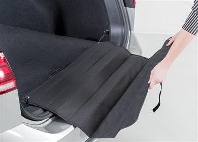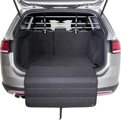 De mat wordt eenvoudig bevestigd aan de laadhaken in je kofferbak met behulp van elastieken banden en karabijnhaken, waardoor hij stevig blijft liggen. Wanneer je de bumperbescherming niet gebruikt, vouw je hem gemakkelijk op en zet je hem vast met klittenband voor een compacte en ruimtebesparende opslag.