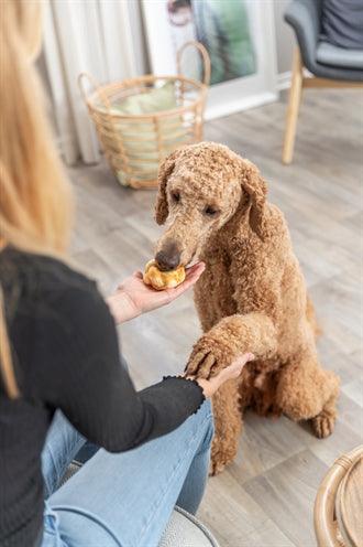 Samenstelling: collageen (75 %), kippenvlees (10 %), erwten proteïne, glycerine, tapiocazetmeel