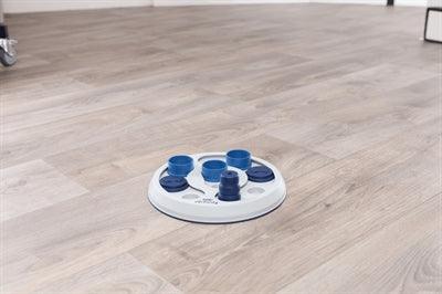 Het bordspel is voorzien van diverse kommetjes, schuifdeksels en een kegel die als stopper fungeert. Door snacks of brokjes onder de deksels of in de kommetjes te verstoppen, moet jouw hond werken om zijn beloning te verdienen. Met de kegel kun je de moeilijkheidsgraad verhogen, zodat het spel uitdagend blijft naarmate jouw hond vaardiger wordt. Dankzij de slipvaste rubberen ring blijft het bord stevig op zijn plek, zelfs tijdens enthousiast speelgedrag.