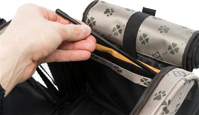De Maxima hondentas blinkt uit in comfort en gebruiksgemak. Dankzij de gevoerde, uitneembare bodemplaat ligt je hond altijd zacht, terwijl de gaas-inzetstukken aan de zijkanten zorgen voor een constante luchtcirculatie en uitzicht naar buiten. Uniek aan dit model is de uitklapbare zijkant, waarmee je het ligoppervlak tijdelijk kunt vergroten – ideaal als je even pauzeert onderweg. De tas is zowel aan de bovenkant als de voorkant te openen, wat het in- en uitstappen eenvoudig maakt. Met de geïntegreerde korthouder blijft je hond veilig op zijn plek, en in het extra opbergvak neem je eenvoudig snacks of accessoires mee. De schouderriem is traploos verstelbaar voor optimaal draagcomfort.