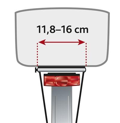 • Niet geschikt voor bagagedragers smaller dan 11,8 cm of breder dan 16 cm