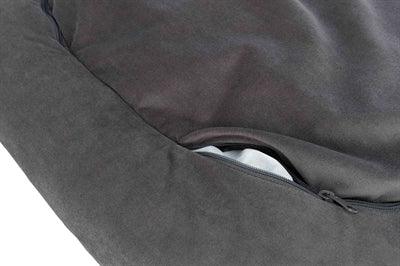 De mand is bekleed met polyester in velours-look, wat zorgt voor een stijlvolle uitstraling en een heerlijk zacht gevoel. De vulling van schuimrubber vlokken biedt uitstekende ondersteuning, terwijl het geïntegreerde kussen extra comfort geeft.