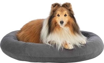 De Trixie Hondenmand Talia Ovaal Donkergrijs biedt comfort en een luxe uitstraling dankzij de zachte velours-look en de ondersteunende schuimrubber vulling. Het ovale design met een lage instap maakt deze mand perfect voor honden die graag ontspannen en hun kop op een rand laten rusten.