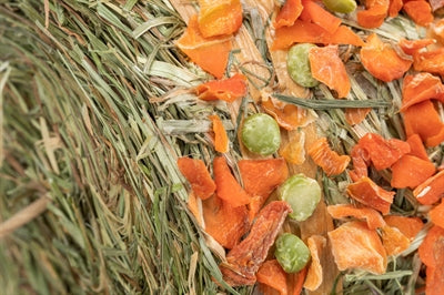 • Gemaakt van hooi, erwten en wortel