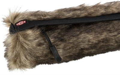 De Trixie Snackdummy Kunstvacht is een innovatief hondenspeeltje dat fysieke en mentale uitdaging combineert. Dankzij de kunstvacht krijgt de dummy een realistische prooi-achtige uitstraling, wat het jachtinstinct van je hond stimuleert. De dummy kan gevuld worden met beloningssnoepjes of voer, waaronder natvoer, waardoor je hond actief bezig is om zijn beloning te bemachtigen. Dit maakt het speeltje perfect voor trainingsdoeleinden en apporteerspelletjes. De handige lus maakt het eenvoudig om de dummy te gooien, zodat je hond hem kan terughalen.