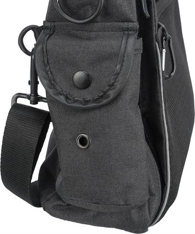 De Trixie Uitlaat- en Dummytas Antraciet 34X9X29 cm is een handige en ruime tas met veel vakken en opbergruimte. Met deze tas neem je alles mee voor een lange wandeling. De tas is voorzien van verschillende voorvakken, een karabijnhaak voor een clicker of fluitje en klepzakken met drukknopen. Een van deze klepzakken is voorzien van een uitgang voor hondenpoepzakjes. Boven beide klepzakken zijn twee D-ringen bevestigd. De binnenzak is voorzien van een rits en bevat een gevoerd, apart vak met elastische klittenbandsluiting. De binnenzijde is voorzien van waterdicht materiaal. De schouderriem is verstelbaar. Deze tas is voorzien van een extra, afneembare heupgordel voor extra draagcomfort.