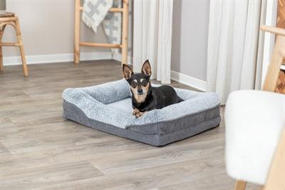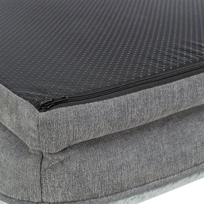 De Trixie Vital hondenmand Lino is ontworpen voor ultiem comfort en ondersteuning. Dankzij het orthopedische 2-lagen-systeem met comfortschuim en visco-elastisch schuim (memory foam) past de mand zich aan de lichaamsvorm van je hond aan. Dit helpt gewrichten en spieren te ontlasten, wat ideaal is voor oudere honden of honden met gewrichtsproblemen. De zachte chenille/pluche bekleding zorgt voor een knus en behaaglijk gevoel, terwijl de slipvaste onderkant voorkomt dat de mand verschuift.