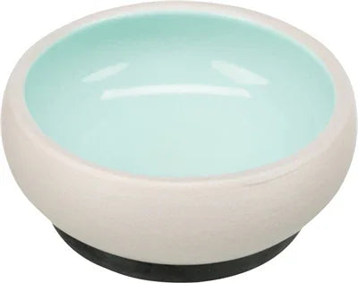 De Trixie Voerbak / Waterbak Keramisch Assorti 14 cm 600 ml is een keramische voerbak voor de hond, uitgevoerd in two-tone kleurstelling en met slipvaste ring. Deze voerbak of drinkbak van Trixie is praktisch in gebruik en stijlvol. De bak is uitgevoerd met ronde vormen en gemaakt van keramiek, wat gemakkelijk en hygiënisch af te nemen is. Door de slipvaste rubberen ring veschuift de bak niet tijdens het eten. Extra leuk is de two-tone kleurstelling, met een opvallende kleur aan de binnenzijde.