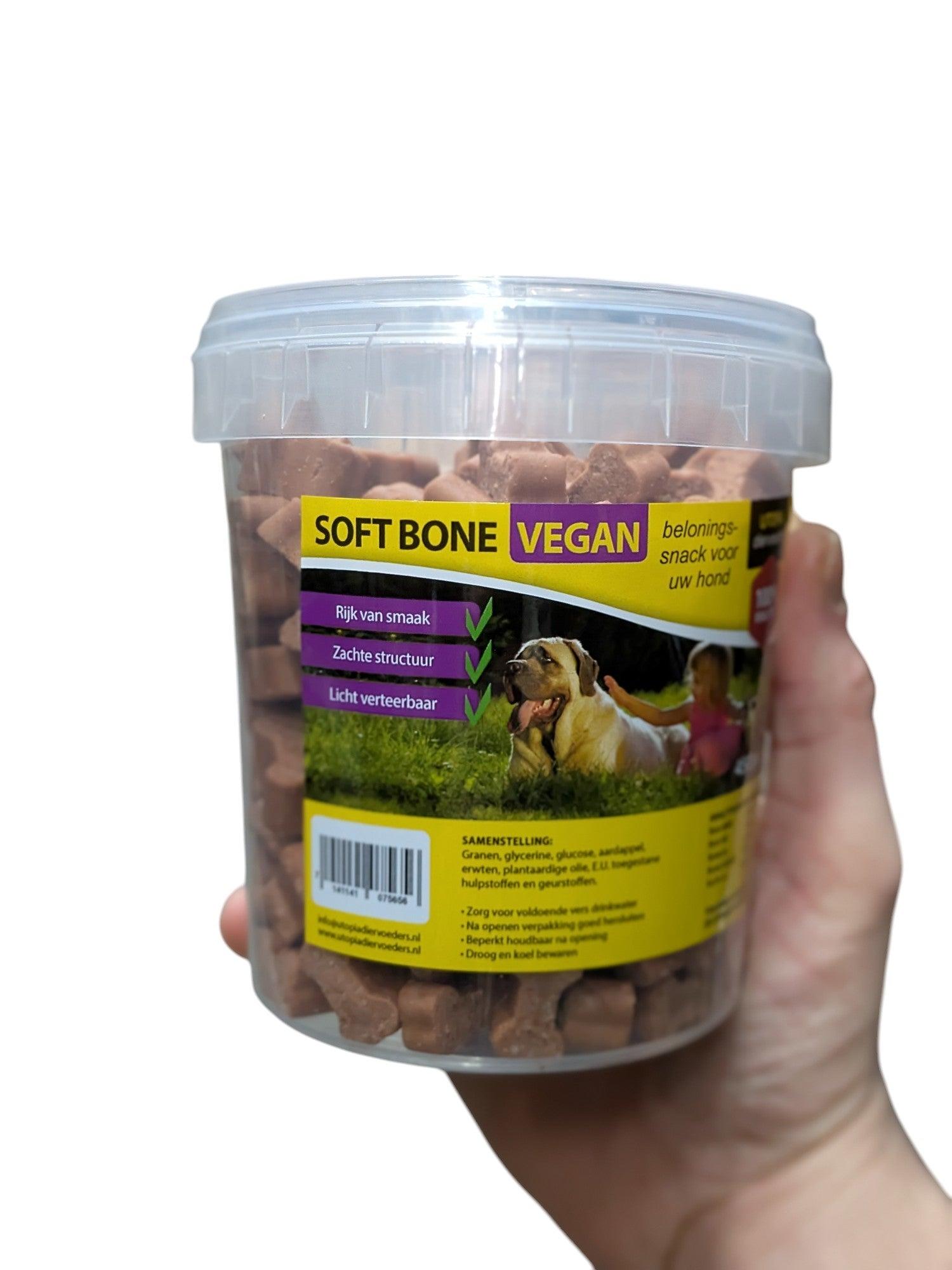 De Utopia Soft Bones Vegan in 450 gr zijn smakelijke, aanvullende beloningssnacks voor de hond een heerlijke traktatie met een zachte structuur en rijke smaak zonder vlees! Is jouw dier gevoelig voor dierlijke eiwitten, of wil je eens iets anders proberen? Kies van voor deze heerlijke Utopia vegan Soft Bones! Deze lekkere beloningssnacks zijn geheel bereid zonder dierlijke ingrediënten, waardoor ze ook voor veel honden met overgevoeligheid voor bepaalde dierlijke eiwitten geschikt zijn. De botjes zijn van een heerlijk zachte structuur, licht verteerbaar en van compact formaat, zodat ze perfect zijn als beloning tijdens het trainen of tussendoor.